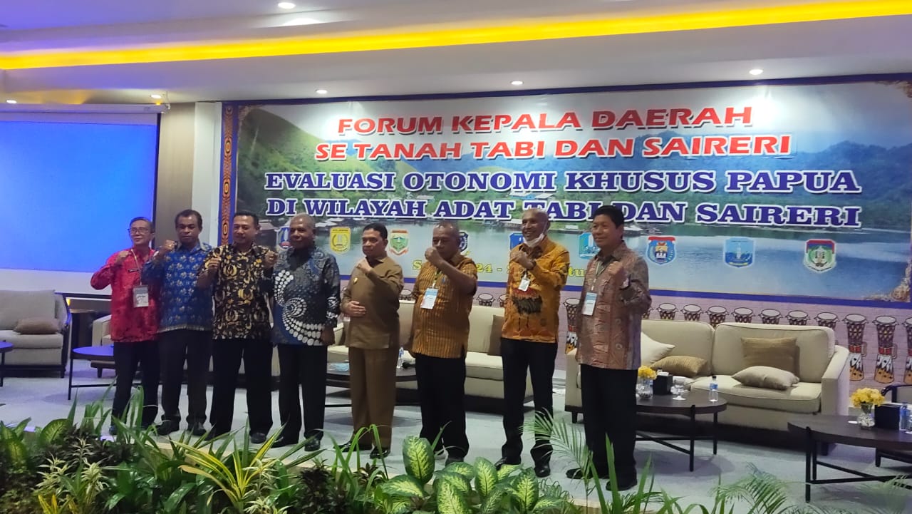 "Kegiatan evaluasi Otsus yang dilakukan ini bertujuan supaya memperoleh catatan secara komprehensif dari pemerintah daerah kabupaten/kota yang tergabung dalam Forum Kepala Daerah Tabi dan Saireri mengenai implementasi otonomi Khusus Papua tingkat kabupaten/kota pada aspek aktualisasi kewenangan pada urusan-urusan pemerintahan yang penting dan strategis bagi kerangka otonomi khusus yang diterima oleh Pemerintah daerah Kabupaten atau Kota,” pungkasnya.